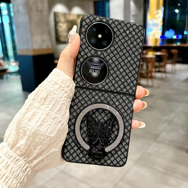 Funda para Teléfono Huawei Pocket 2 con Rombos y Brillantes para PC con Soporte (Negro)