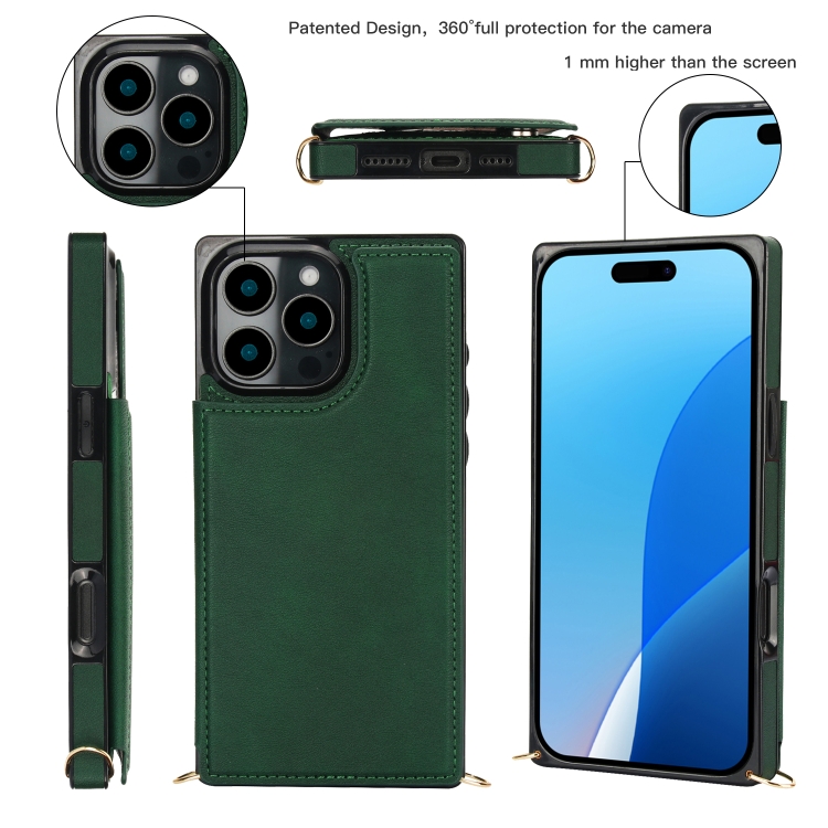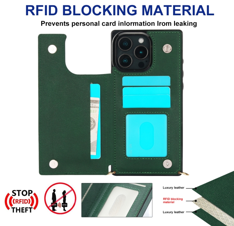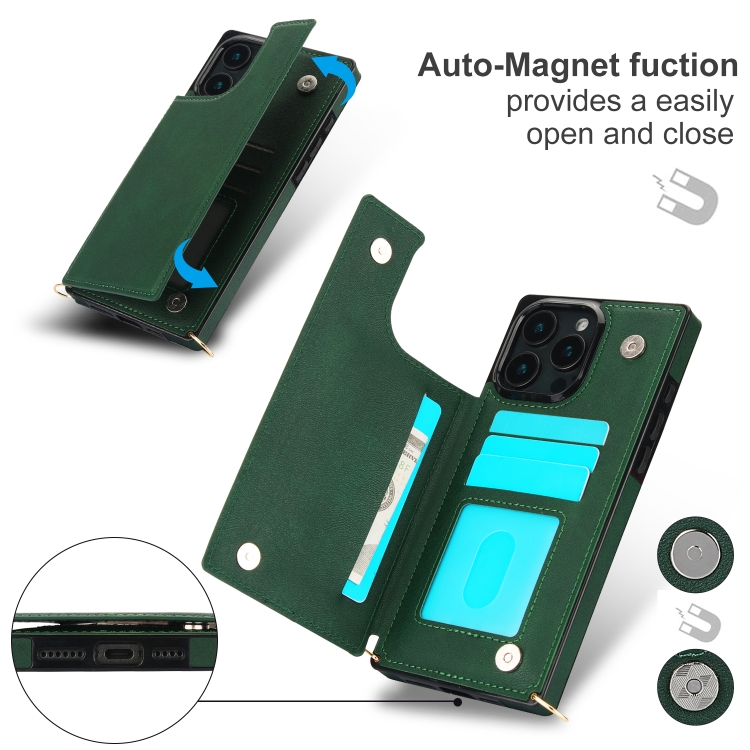 Funda para Teléfono Tipo Billetera con Tapa y Doble Hebilla Cuadrada Cruzada iPhone 16 Pro Max (Verde)
