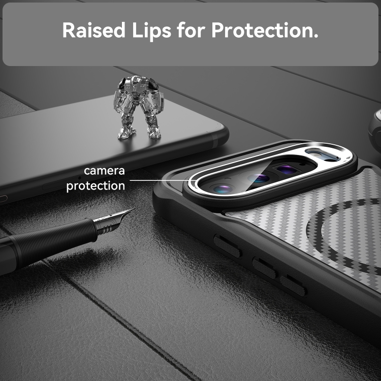 Funda para Teléfono Translúcida Magsafe con Textura de Fibra de Carbono para Google Pixel 9 Pro/9 (Negra)