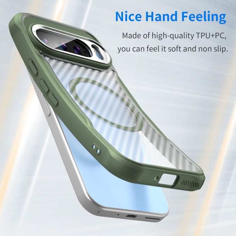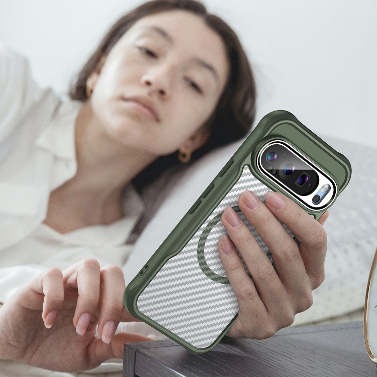 Funda para Teléfono Google Pixel 9 Pro/9 Translúcida Magsafe Fibra de Carbono (Verde)
