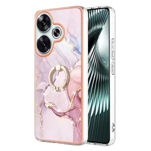 Funda para Teléfono Xiaomi Poco F6 5G con Galvanoplastia de Mármol Imd TPU y Soporte para Anillo (Oro Rosa 005)