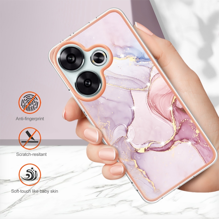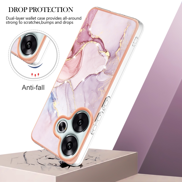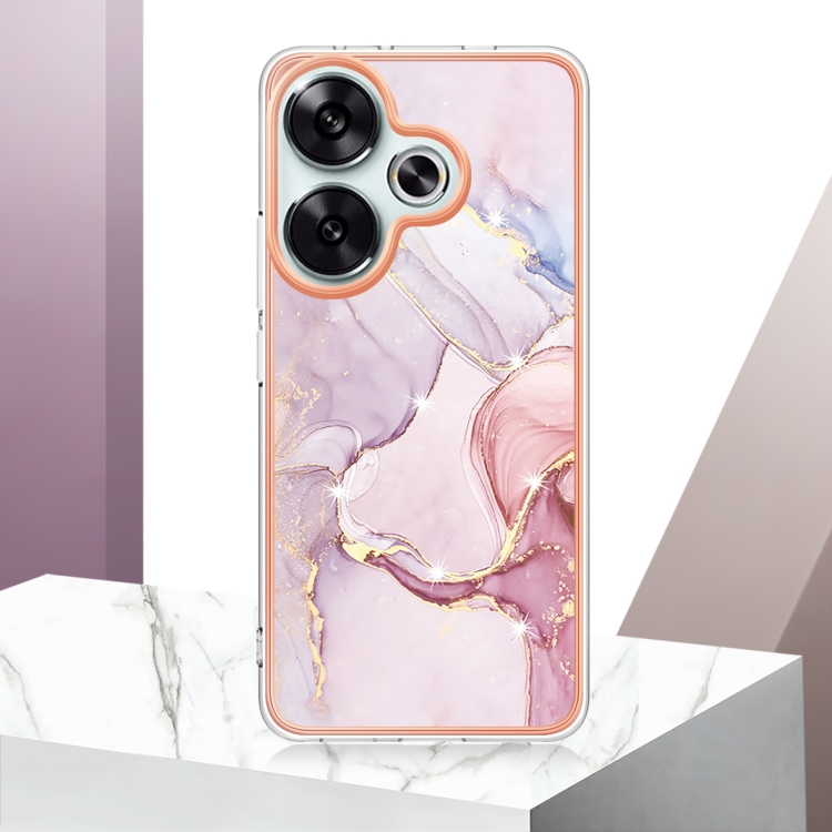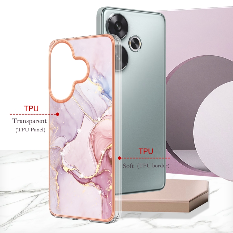 Funda para Teléfono Xiaomi Poco F6 5G con Revestimiento de Mármol Galvanizado y Doble Cara Imd (Oro Rosa 005)