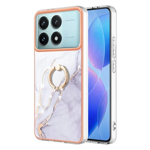Funda para Teléfono Xiaomi Poco F6 Pro 5G con Galvanoplastia de Mármol Imd TPU y Soporte para Anillo (Blanco 006)