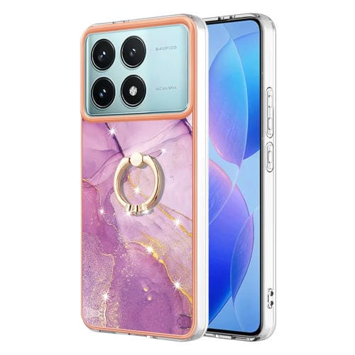 Funda para Teléfono Xiaomi Poco F6 Pro 5G con Galvanoplastia de Mármol Imd TPU y Soporte para Anillo (Morado 001)