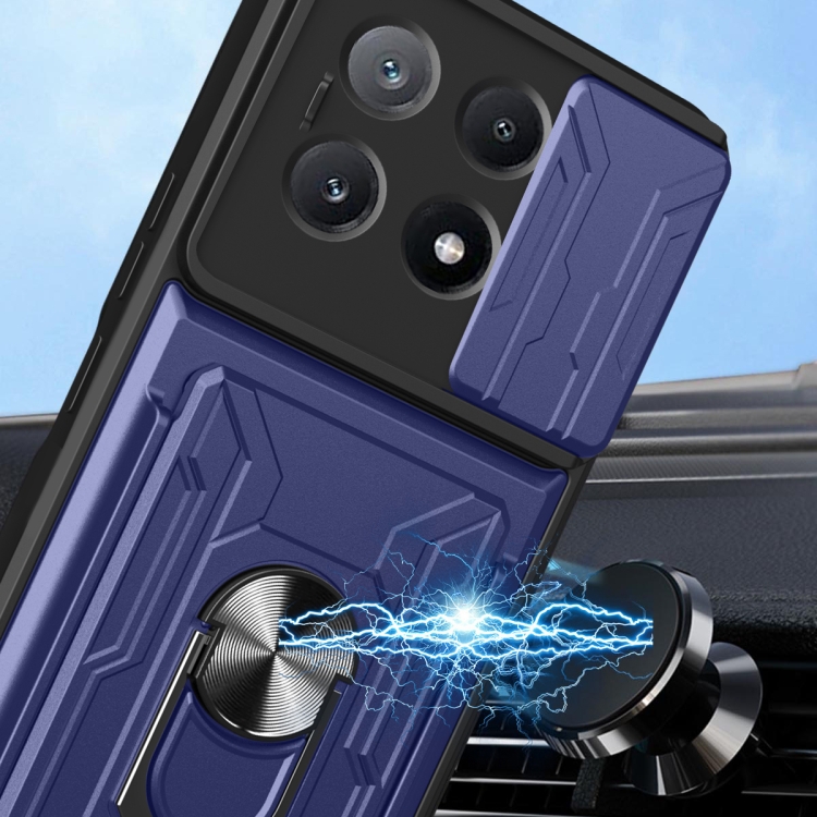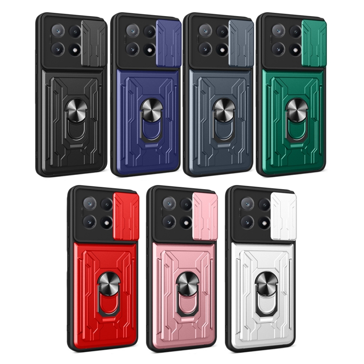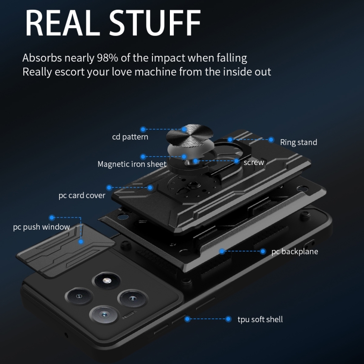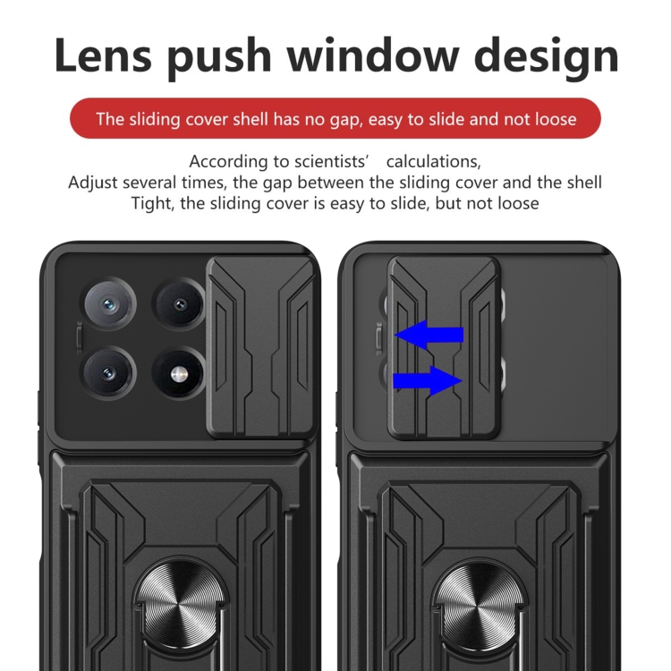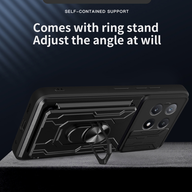 Funda para Teléfono Xiaomi Poco X6 Pro con Ranura para Tarjeta y TPU + PC Deslizante (Negro)