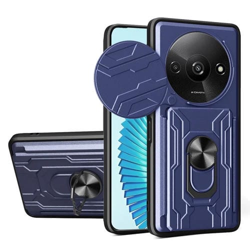 Funda para Teléfono Xiaomi Redmi A3 con Ranura para Tarjetas y TPU + PC Deslizante (Azul)