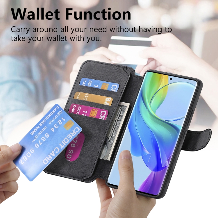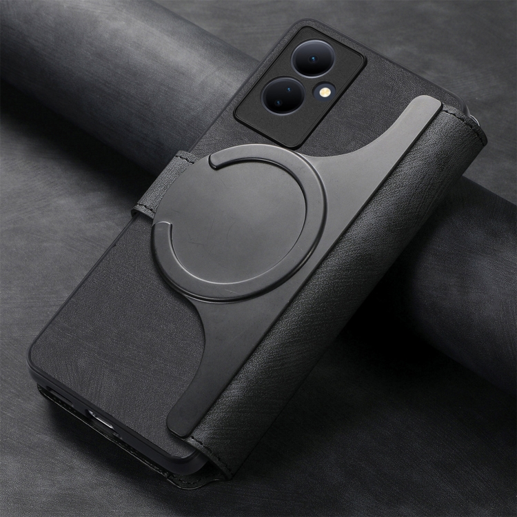 Funda para Vivo V29 Lite Neo Magsafe Rfid Antirrobo de Cuero Retro para Teléfono (Negro)