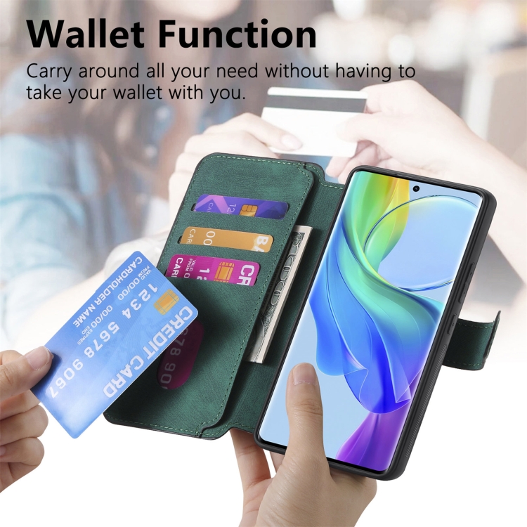 Funda para Vivo V29 Lite Neo Magsafe Rfid Antirrobo de Cuero Retro para Teléfono (Verde)