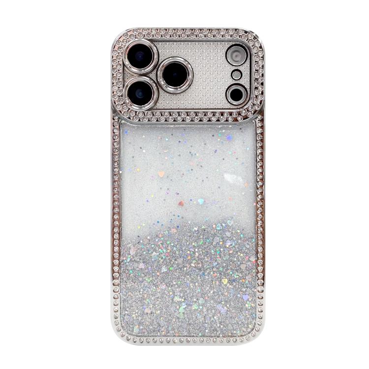 Funda plateada con lentejuelas y purpurina con degradado de diamante para iPhone 17 Pro (plateada)