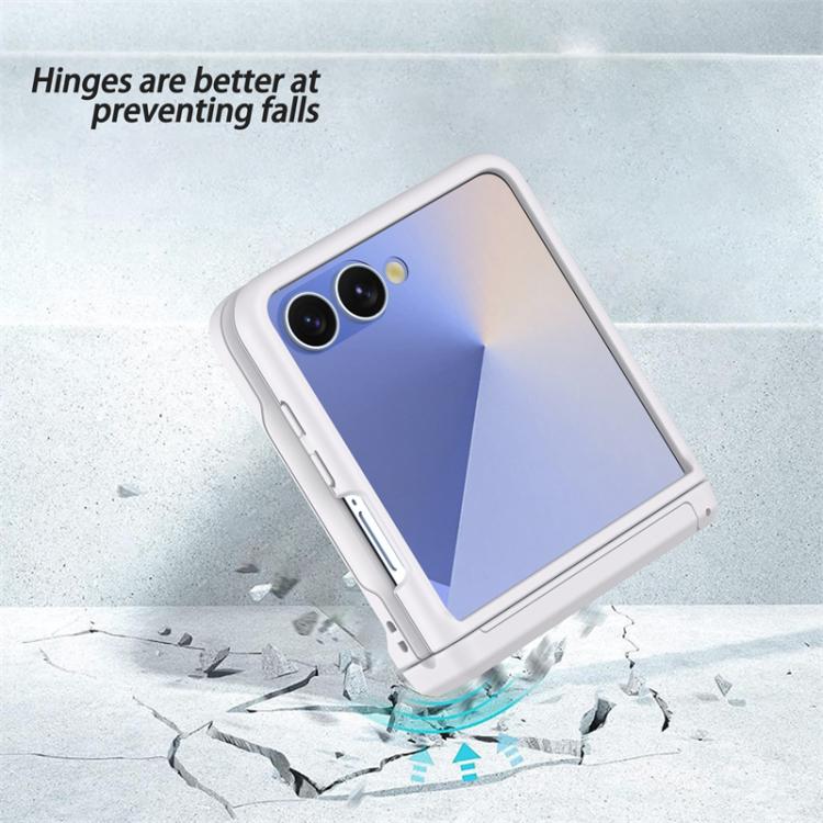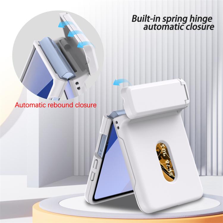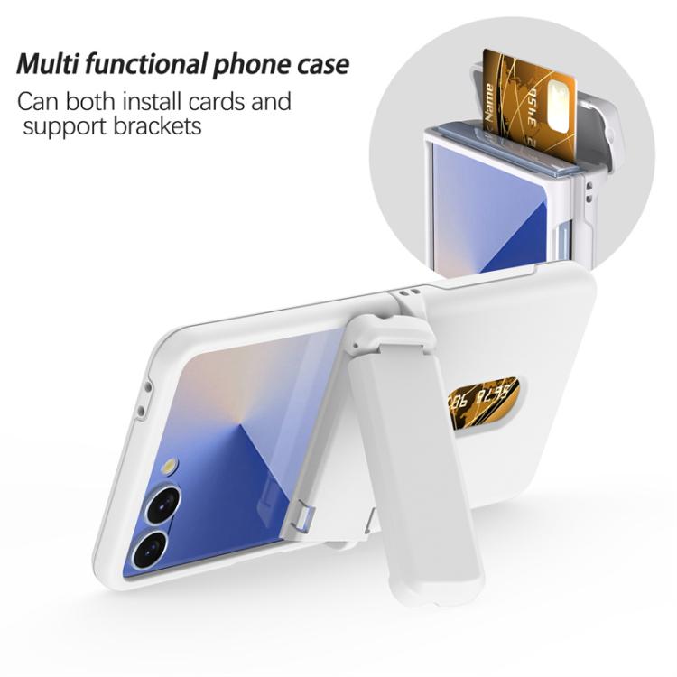Funda plegable de PC con soporte y ranura para tarjeta y cadena de goma para Samsung Galaxy Z Flip7 5G (blanca)