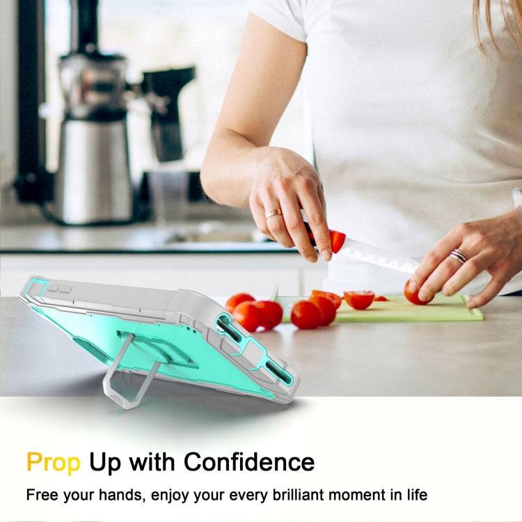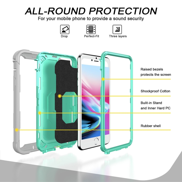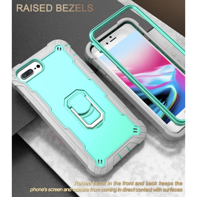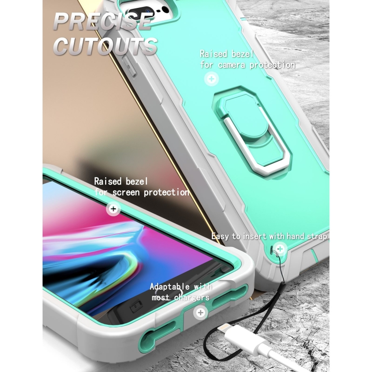 Funda Protectora iPhone 8 Plus 7 Plus 3 Capas PC Soporte Giratorio (Gris Blanco y Menta Verde)