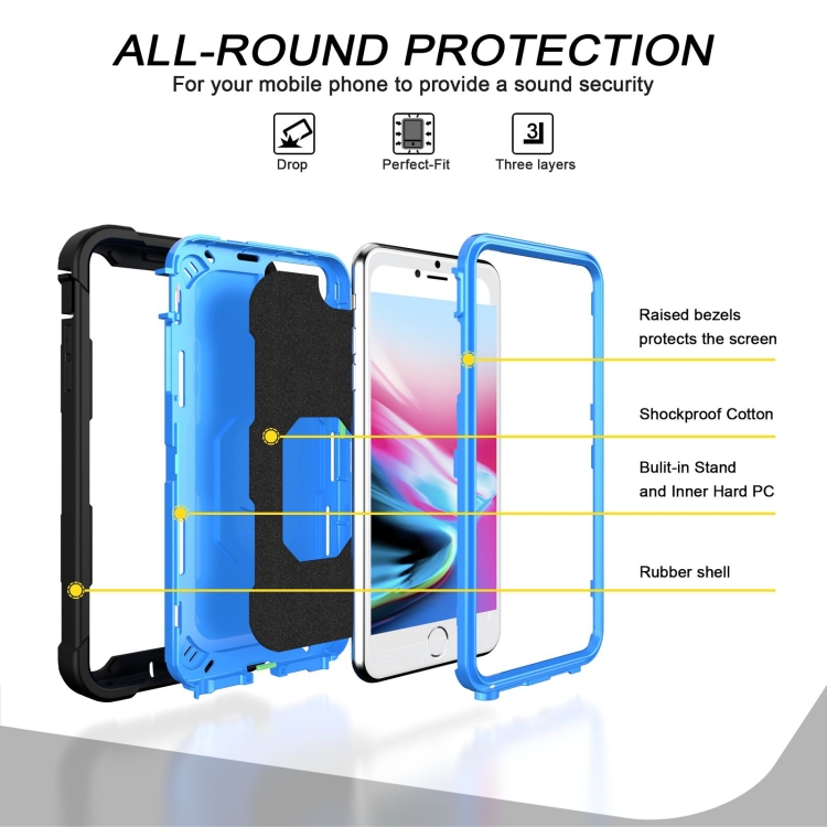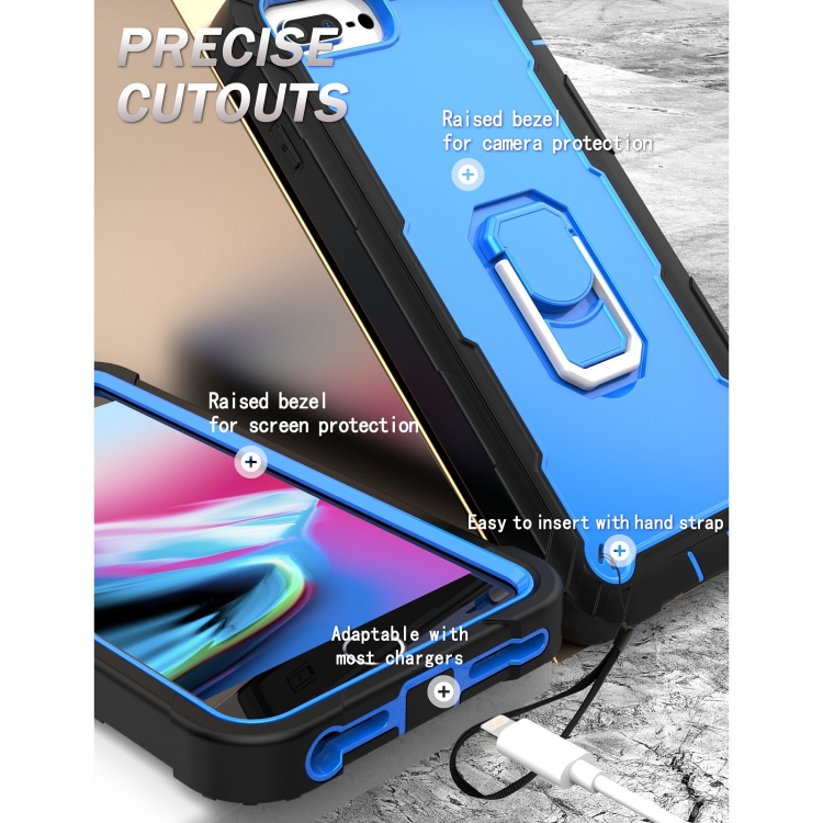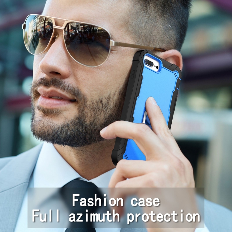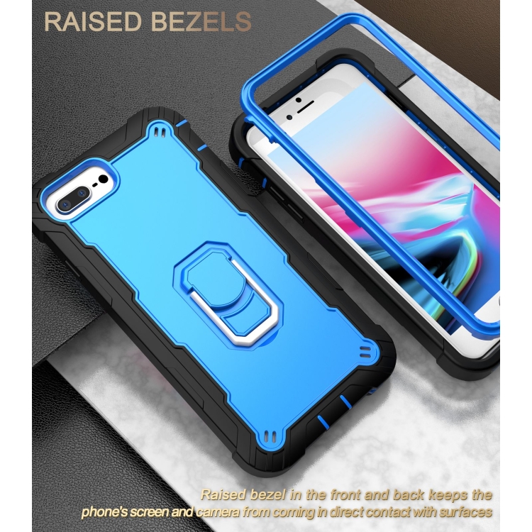 Funda Protectora para iPhone 8 Plus y 7 Plus 3 Capas PC con Soporte Giratorio (Negro + Azul)