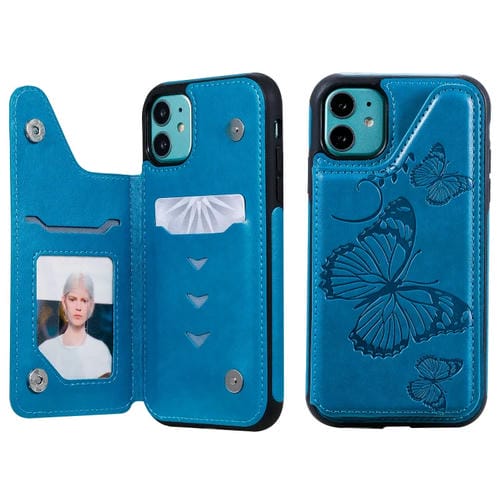 Funda Protectora iPhone 11 Pro Patrón Mariposa Soporte Ranuras Tarjetas Marco Fotos (Azul)