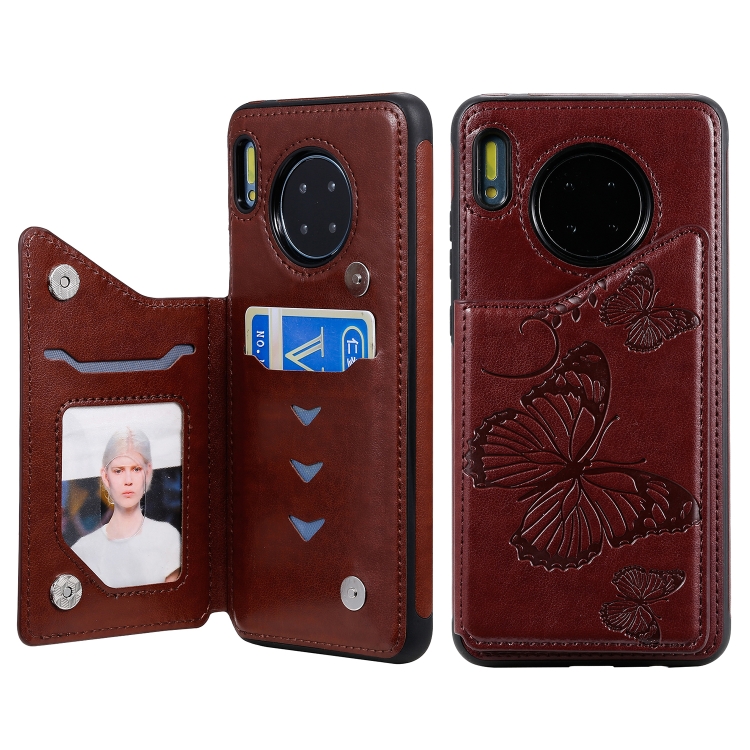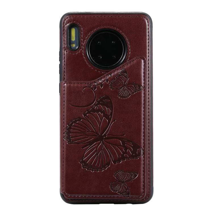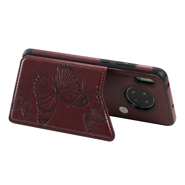 Funda Protectora Huawei Mate30 Patrón Relieve Mariposa con Soporte Ranuras Tarjetas Marco Fotos (Marrón)