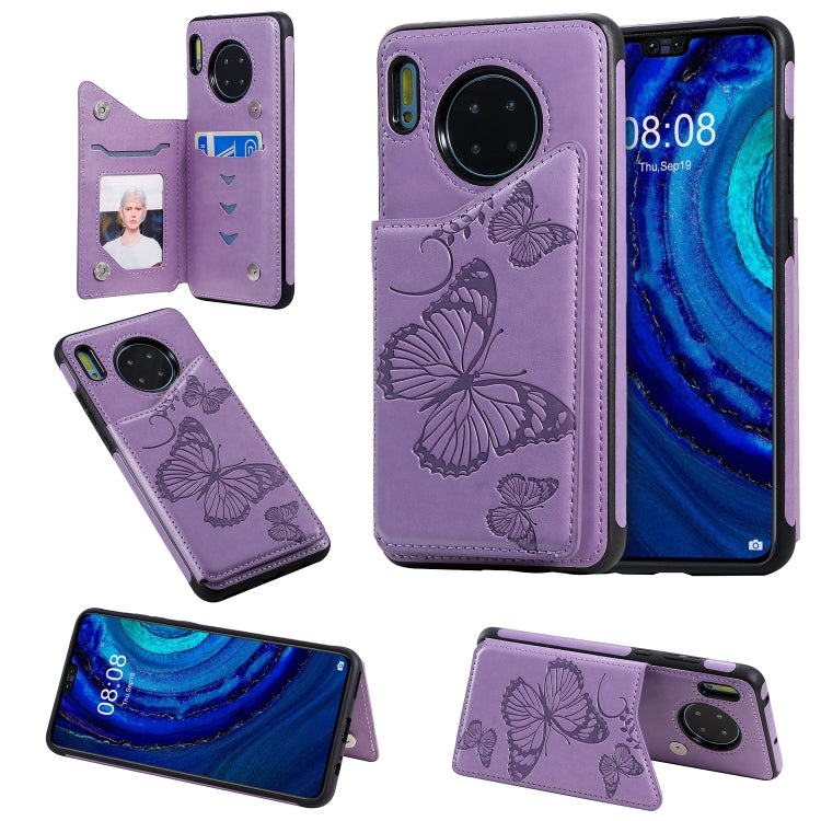 Funda Protectora Huawei Mate30 Patrón Relieve Mariposa con Soporte Ranuras Tarjetas Marco Fotos (Púrpura)
