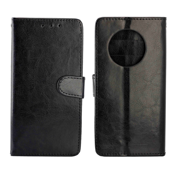Funda protectora con tapa horizontal de cuero con textura de caballo loco para Huawei Mate 40 con soporte, ranuras para tarjetas, billetera y marco de fotos (negro)