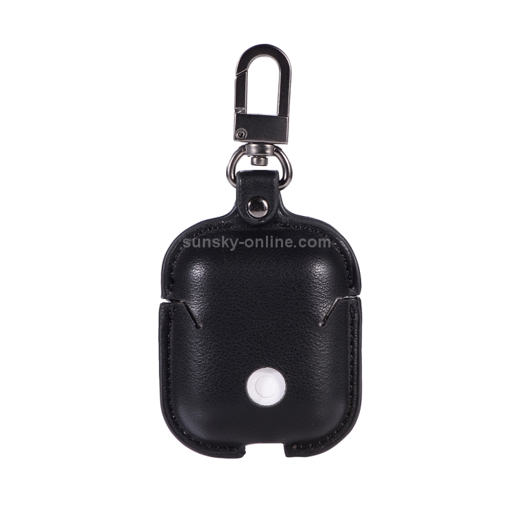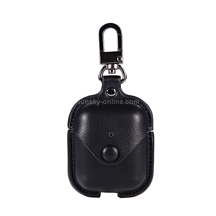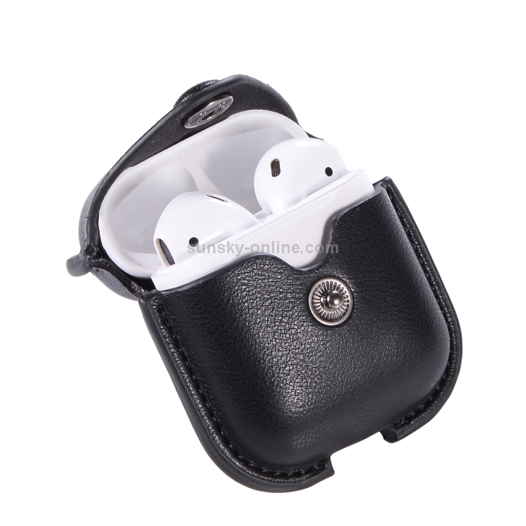 Funda Protectora Cuero PU Auriculares Inalámbricos Apple Airpods 1/2 Hebilla Metal (Negro)