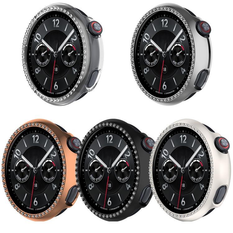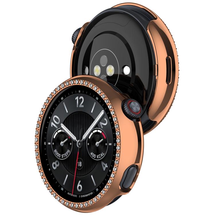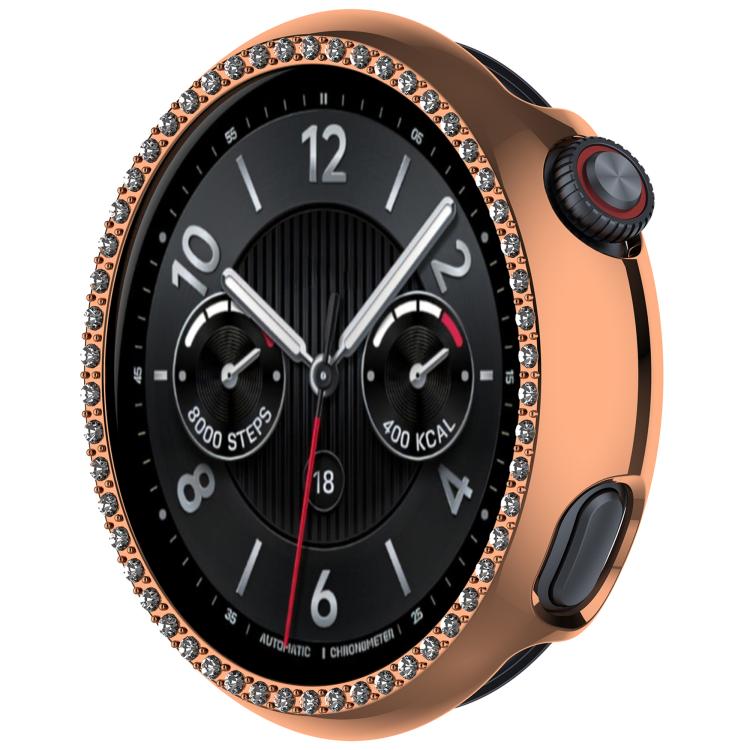 Funda protectora de PC hueca con media cobertura de diamante de una sola fila para Vivo Watch 5 (oro rosa)