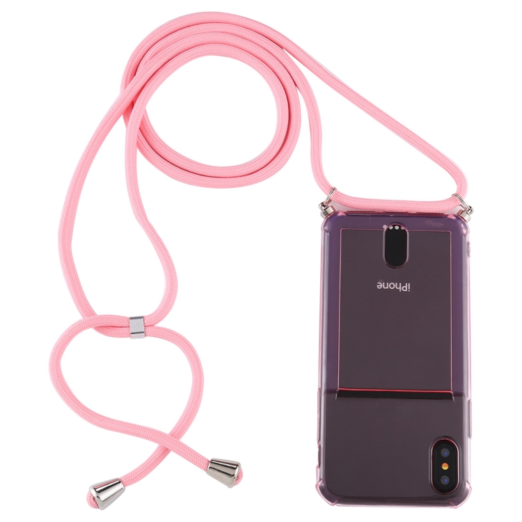 Funda Protectora TPU para iPhone Xs Max con Cordón y Ranura para Tarjeta (Rosa)