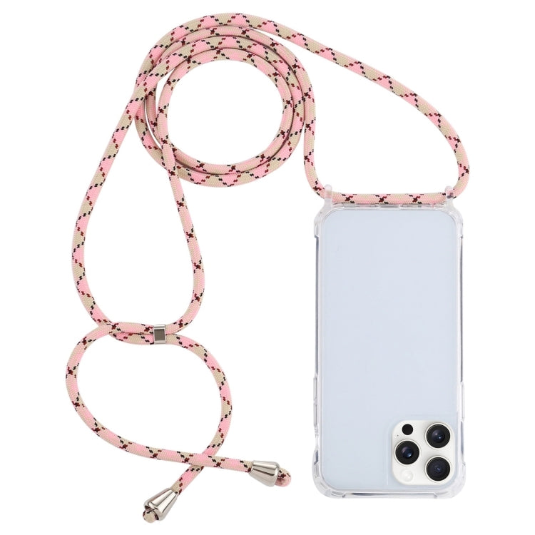 Funda Protectora iPhone 16 Pro Acrílico Transparente a Prueba de Golpes con Cordón (Café Albaricoque Rosa)