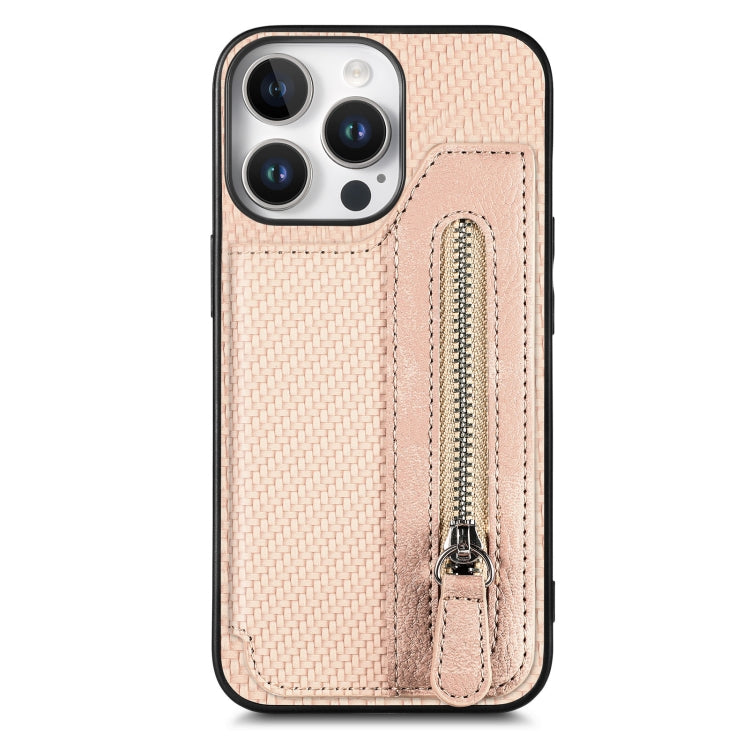 Funda Tipo Billetera con Cremallera y Tapa Horizontal de Fibra de Carbono para iPhone 16 Pro (Caqui)
