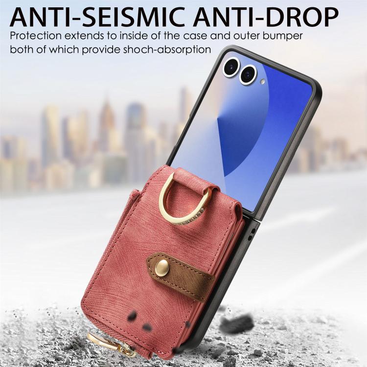 Funda tipo cartera con cremallera vertical y anillo retro para Samsung Galaxy Z Flip 7 5G (rosa)