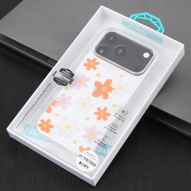 Funda transparente con diseño floral pequeño y brillante para iPhone 17 Pro Max (girasol de cuatro colores) de DFANS DESIGN