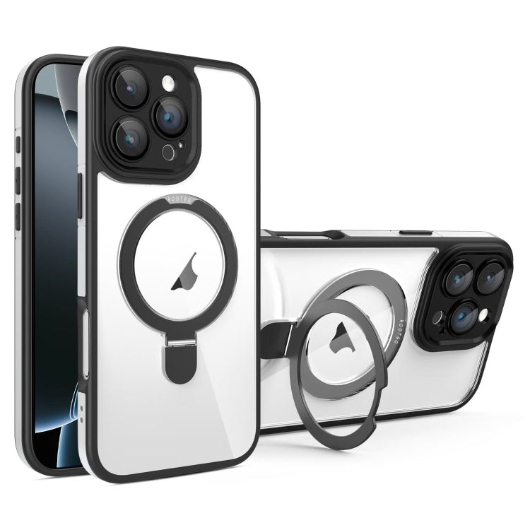 Funda Transparente con Soporte Magsafe para iPhone 16 Pro Max con Película de Cobertura Total (Negro y Blanco)