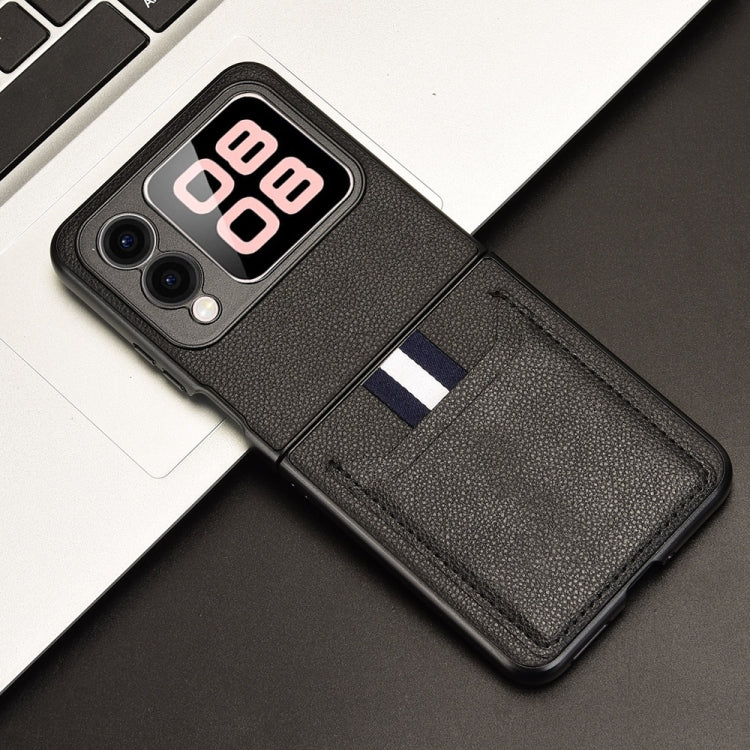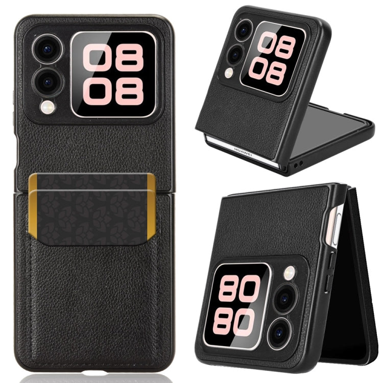 Funda Trasera Huawei Nova Flip con Ranuras para Tarjetas y Textura de Lichi (Negra)
