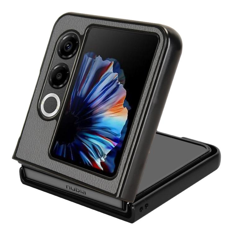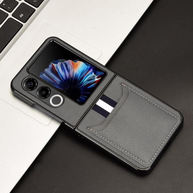 Funda Trasera ZTE Nubia Flip2 Textura Litchi Ranuras Tarjetas (Gris)
