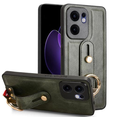 Funda Trasera de Cuero con Correa para El Brazo para Oppo Reno13 F 5G (Verde)