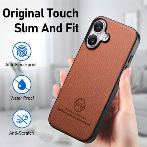 Funda trasera de piel y sarga para iPhone 17 (marrón)