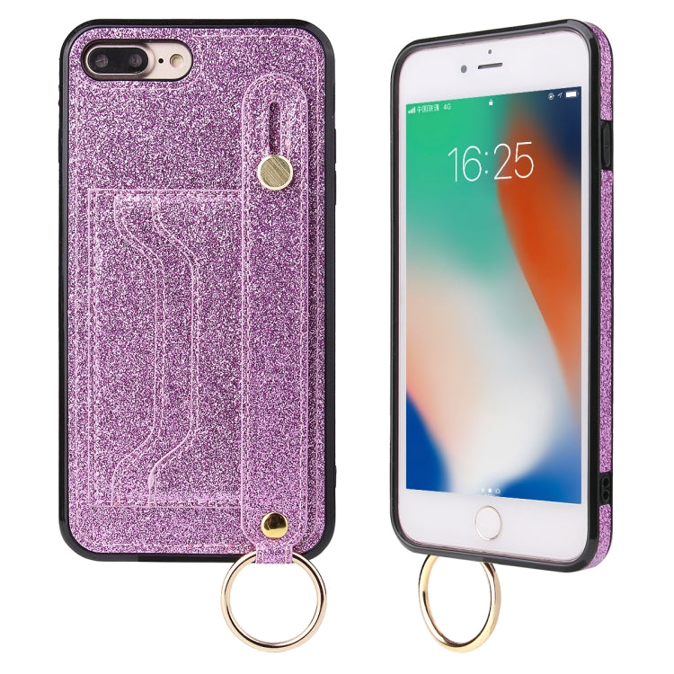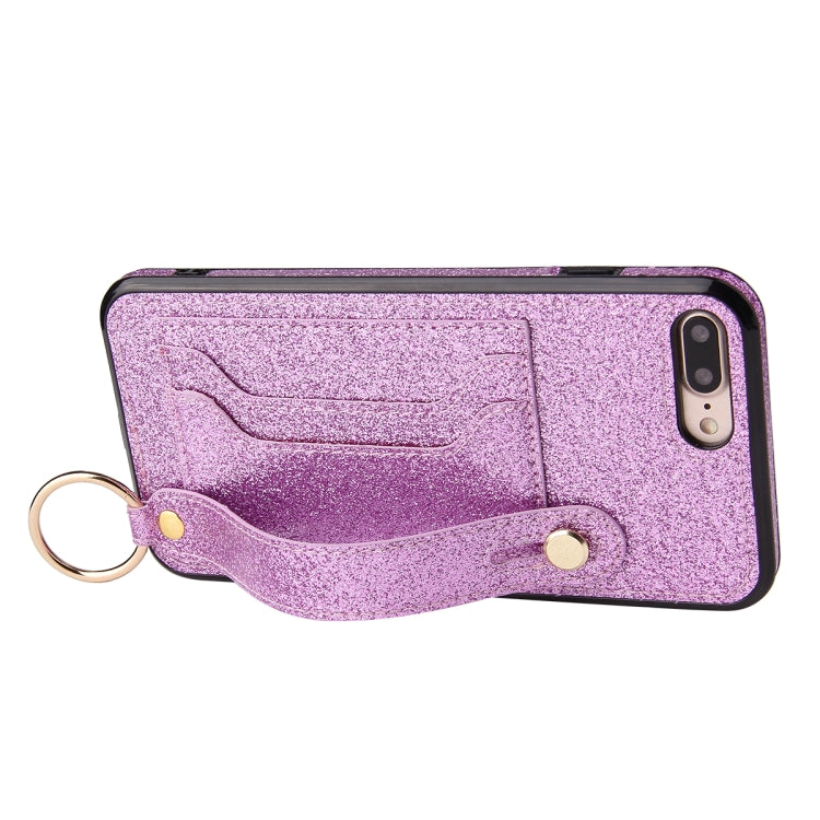 Funda Protectora Pu + TPU Glitter Powder para iPhone 8 Plus 7 Plus con Soporte Ranuras Tarjetas Correa (Morado)