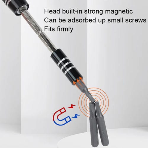 El Kit de Destornilladores 64 en 1 es un Conjunto profesional diseñado para el desmontaje y reparación de tabletas y Teléfonos celulares. Este kit incluye una amplia variedad de puntas de destornillador fabricadas en acero al vanadio CR-V, endurecidas y tratadas térmicamente para garantizar resistencia al desgaste y durabilidad. Su diseño incorpora un mango antideslizante de goma suave (PP + TPR) que proporciona un agarre cómodo y seguro durante el uso. Además, cuenta con un sistema magnético en el mango y la barra de extensión para facilitar la manipulación de tornillos y Piezas pequeñas, minimizando pérdidas. La extensión universal permite doblar o alargar el alcance según sea necesario, adaptándose a diferentes tipos de reparaciones. Este kit es compatible con múltiples modelos de dispositivos Móviles, ofreciendo una solución integral para usuarios que reparan por cuenta propia o técnicos especializados.
