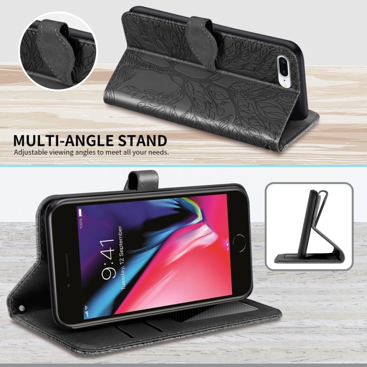 Estuche de Cuero Life Of Tree con Tapa Horizontal, Soporte, Ranura para Tarjeta y Billetera para iPhone 8 Plus y 7 Plus
