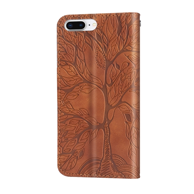 Estuche de Cuero Life Of Tree con Tapa Horizontal Patrón de Relieve Soporte Ranura Tarjeta Billetera Marco Fotos Cordón para iPhone 8 Plus y 7 Plus (Marrón)