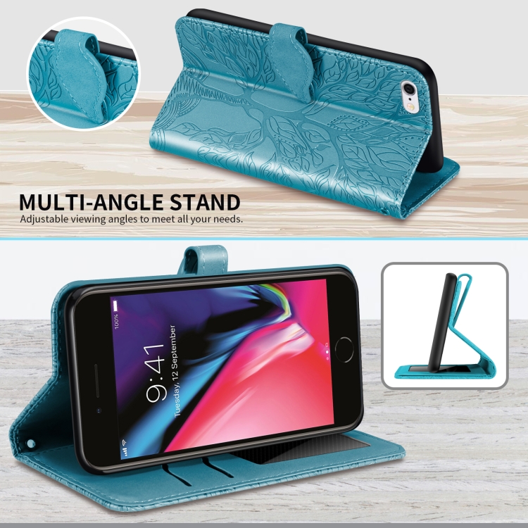Estuche de Cuero Life Of Tree para iPhone 6 Plus y 6S Plus con Tapa Horizontal, Soporte, Ranura para Tarjeta, Billetera y Marco de Fotos (Lake Blue)