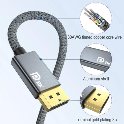 - Soporta resoluciones hasta 8K a 60Hz, 4K a 144Hz, 2K a 165Hz; enchufe y reproducción; Soporte en caliente; longitud de Cable de 2 metros; diseño trenzado para mayor durabilidad