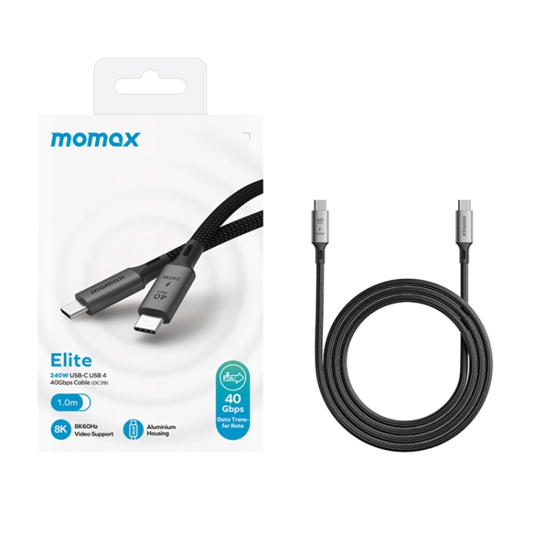 - 1x Cable de Carga y datos Momax DC39 1M USB4.0 USB-C a USB-C 240W trenzado