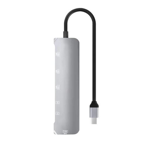El Adaptador Nk-3043 6 en 1 es un dispositivo multifuncional diseñado para ampliar la conectividad de equipos con Puerto USB Type-C. Compatible con Computadoras Portátiles, Teléfonos Móviles y tabletas que soportan interfaz USB-C, permite la Conexión simultánea de múltiples dispositivos mediante sus cuatro Puertos USB femeninos y dos ranuras para Tarjetas de memoria TF y SD. Su función principal es facilitar la transferencia de datos y la lectura/escritura de Tarjetas de memoria con capacidades inferiores a 1TB, ofreciendo velocidades de transferencia entre 23 y 29 MB/s. Su diseño compacto y Carcasa de aleación de aluminio aseguran una rápida disipación de calor y un rendimiento estable durante su uso.