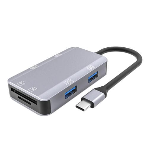 - 1x Adaptador Nk-3049 6 en 1 USB-C / Type-C a TF / SD con 4 Puertos USB Femeninos (Gris Espacial)