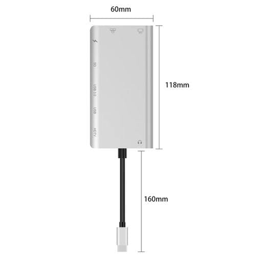 Hub USB-C 8 en 1 Onten 9591Bd con PD USB-C, Gigabit Ethernet, Dual USB 3.0, HDMI, VGA, Slot y Aux 3.5mm (Silver)