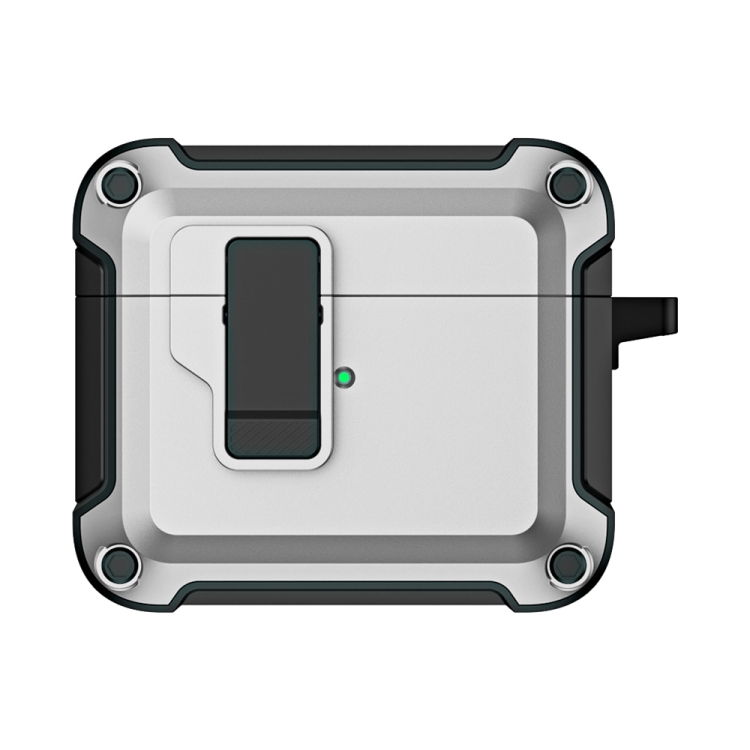 Funda Protectora para AirPods 3 TPU + PC con Interruptor de Bloqueo y Gancho (Gris)