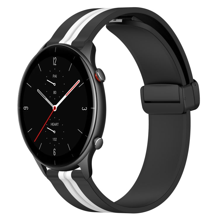 Correa de Reloj para Amazfit GTR 2E 22mm Silicona con Cierre Magnético Plegable (Negro + Blanco)