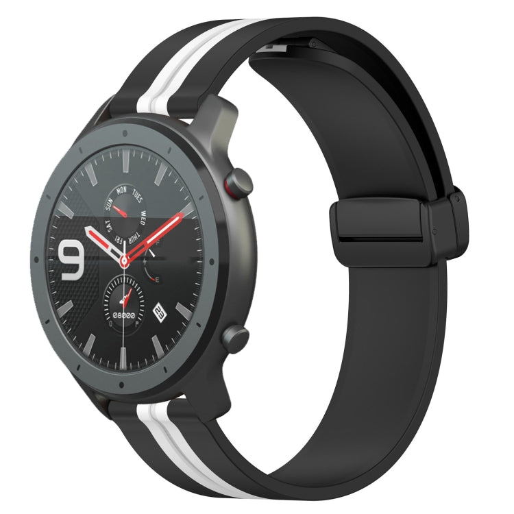 Correa de Reloj para Amazfit GTR 47mm 22mm Silicona con Cierre Magnético Plegable (Negro + Blanco)