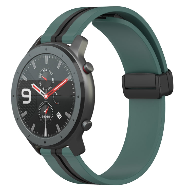 Correa de Reloj Silicona para Amazfit GTR 47mm 22mm con Cierre Magnético Plegable (Verde Oliva + Negro)