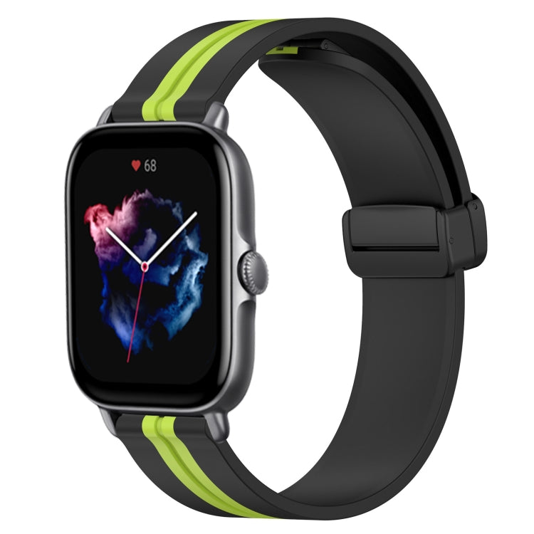 Correa de Reloj para Amazfit GTS 3 20mm Silicona con Cierre Magnético Plegable (Negro + Verde Lima)