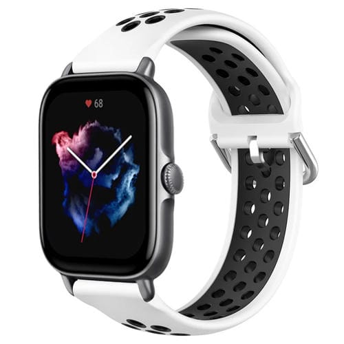 Correa de Silicona Deportiva para Amazfit GTS 3 20mm Transpirable Perforada (Blanco + Negro)