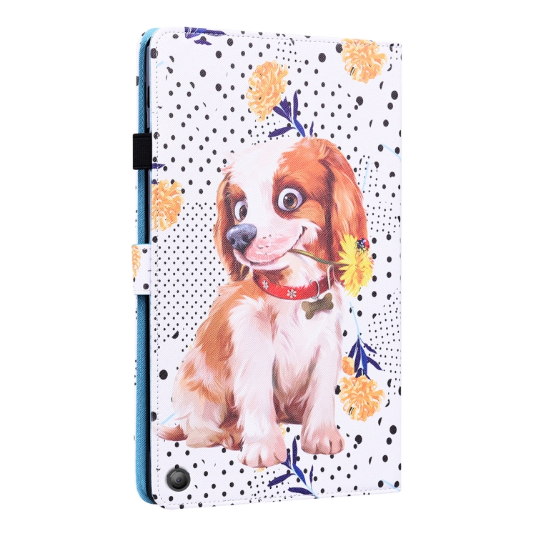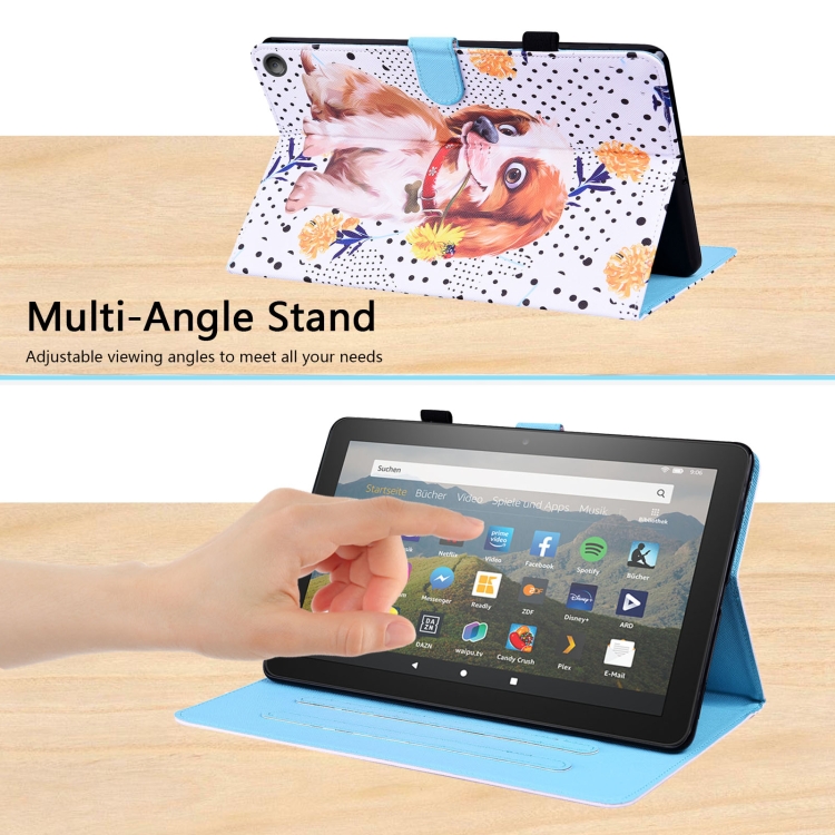 Funda de Cuero para Amazon Fire HD 8 2020 10th Gen con Soporte, Ranuras y Función Despertador (Pequeño Perro de Flores)