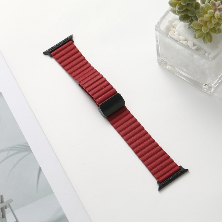 Correa para Apple Watch 42mm con Hebilla Plegable Magnética y Ondulación de Agua (Rojo Vino)